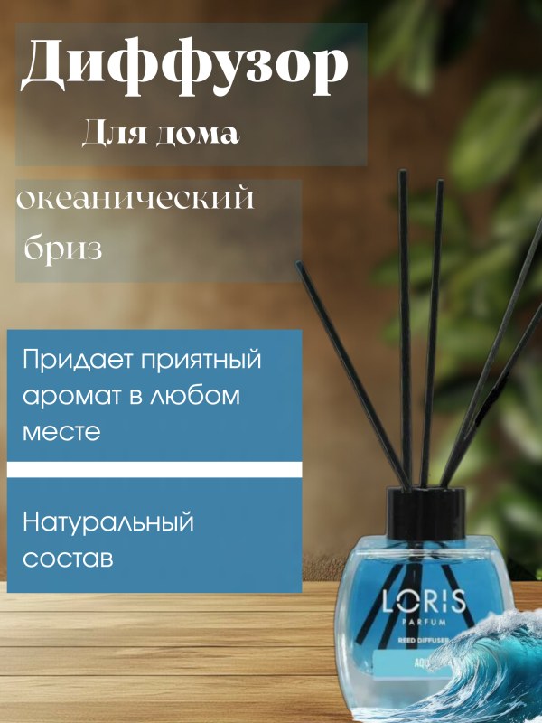 Атмосфера уюта и стиля в вашем доме Диффузор для дома Loris 120 мл — это идеальное решение для создания приятной и уютной атмосферы в любом помещении. Ароматический диффузор с палочками наполняет пространство мягким, изысканным ароматом, превращая дом в место комфорта и гармонии. Это не просто ароматизатор воздуха, а настоящий парфюм для дома. Изысканные ароматы на любой вкус Линейка диффузоров Loris предлагает разнообразие ароматов — от свежих и легких до глубоких и насыщенных. Каждый аромат раскрывается постепенно, создавая многогранную композицию, которая подчеркивает стиль интерьера и настроение пространства. Стойкость и равномерное распространение Благодаря продуманной формуле и системе палочек, аромат равномерно распространяется по помещению и сохраняется на протяжении длительного времени. Диффузор 120 мл идеально подходит для использования в квартире, офисе или доме, обеспечивая постоянную свежесть без необходимости частого обновления. Стильный элемент интерьера Диффузор Loris — это не только аромат, но и эстетика. Лаконичный дизайн флакона гармонично впишется в любой интерьер: от классики до современного минимализма. Он станет стильным акцентом и подчеркнет внимание к деталям. Простота использования Достаточно открыть флакон, вставить палочки и наслаждаться ароматом. Интенсивность можно регулировать количеством палочек, что делает использование максимально удобным и индивидуальным.