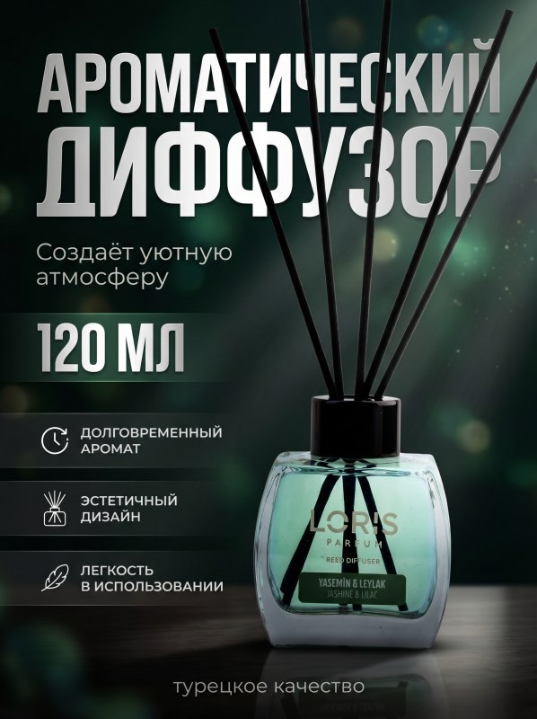 Атмосфера уюта и стиля в вашем доме Диффузор для дома Loris 120 мл — это идеальное решение для создания приятной и уютной атмосферы в любом помещении. Ароматический диффузор с палочками наполняет пространство мягким, изысканным ароматом, превращая дом в место комфорта и гармонии. Это не просто ароматизатор воздуха, а настоящий парфюм для дома. Изысканные ароматы на любой вкус Линейка диффузоров Loris предлагает разнообразие ароматов — от свежих и легких до глубоких и насыщенных. Каждый аромат раскрывается постепенно, создавая многогранную композицию, которая подчеркивает стиль интерьера и настроение пространства. Стойкость и равномерное распространение Благодаря продуманной формуле и системе палочек, аромат равномерно распространяется по помещению и сохраняется на протяжении длительного времени. Диффузор 120 мл идеально подходит для использования в квартире, офисе или доме, обеспечивая постоянную свежесть без необходимости частого обновления. Стильный элемент интерьера Диффузор Loris — это не только аромат, но и эстетика. Лаконичный дизайн флакона гармонично впишется в любой интерьер: от классики до современного минимализма. Он станет стильным акцентом и подчеркнет внимание к деталям. Простота использования Достаточно открыть флакон, вставить палочки и наслаждаться ароматом. Интенсивность можно регулировать количеством палочек, что делает использование максимально удобным и индивидуальным.