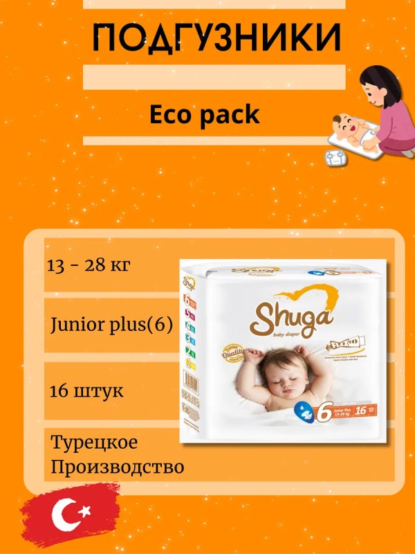 Подгузники Shuga Junior plus 16шт 13-28кг