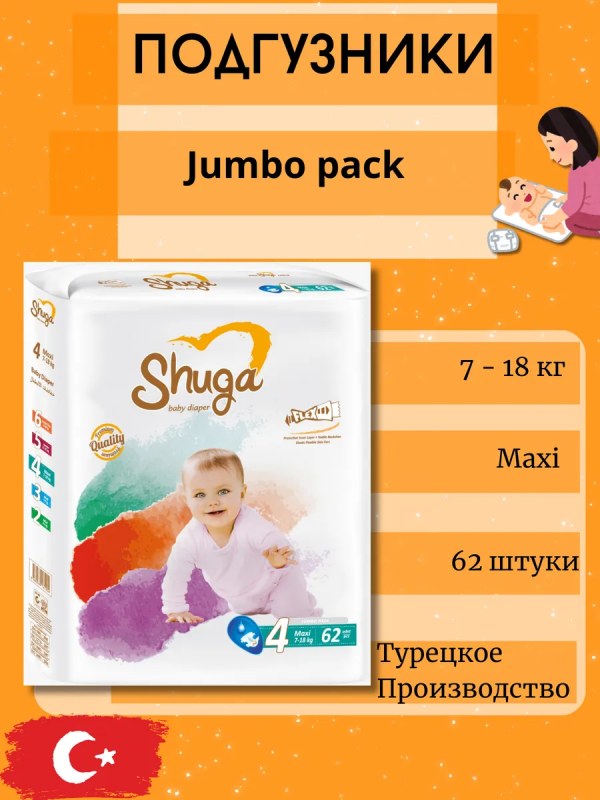 Подгузники Shuga Maxi 62шт 7-18кг